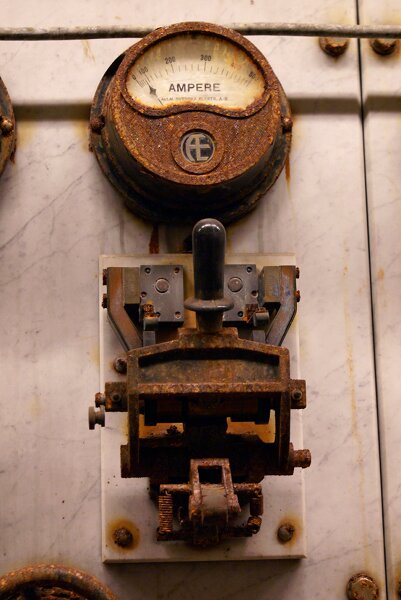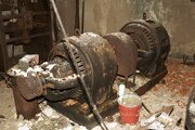 Smuts och bråte täckte vissa delar av lokalen. Här en omformare.Det första problem som togs itu med var att lokalerna var så fuktiga. Det har under årens lopp lett till att det blivit mycket rost på maskinutrustningen och mögel på inredningen. I lagerlokalen var trähyllorna så pass angripna att de revs ut.