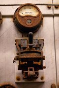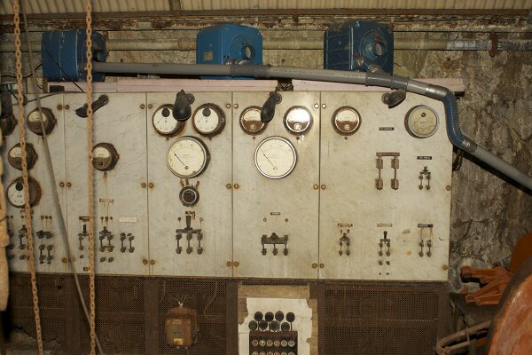 Rosten har angripit kontrolltavlan. Foto: Linda.En stor mängd reservdelar och verktyg har sparats och låg i hyllorna och rostade sönder. De undersöktes och sorterades. Det var svårt att veta vad allt hade använts till. Men allt som kunde vara till minsta nytta sparades i alla fall och lades på lager för framtida bruk. Ventiler och vipparmar från motorn hade demonterats sedan tidigare och dessa saker var tvungna att identifieras bland all bråte.