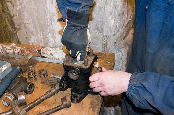Förberedelse av vattenpumpIngen av kylvattenpumparna var i speciellt bra skick. De bästa delarna från de två pumparna letades ut för att kunna få ihop en fungerande pump. Ändå krävdes en hel del rengöring och slipning av delarna för att få dem användbara.