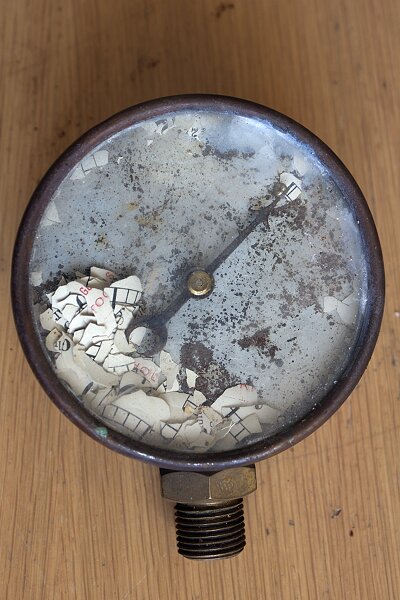 Skalan har fallit sönder.Alla delar som behövdes för restaureringen fanns inte kvar och allt som fanns på plats var inte i tillräckligt bra kondition för att enkelt kunna återställas till användbart skick. Vissa detaljer var tvungna att nytillverkas eller renoveras av anlitade hantverkare och specialister. Ett sådant fall var manometrarna (tryckmätare).