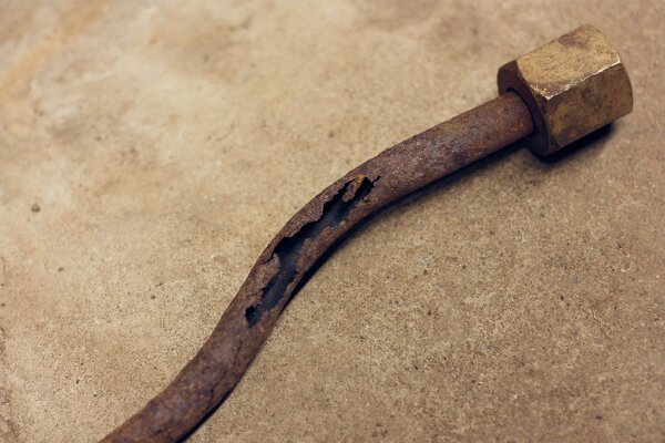 Så här får inte ett rör se ut. Foto: PeterEn viktig del av dieselmotorn utgörs av alla rör, ledningar och kanaler med uppgift att transportera fram diverse ämnen till olika delar av maskinen. Det som ska fram är bränsle, tryckluft för bränsleinsprutning och igångsättning, vatten för kylning samt olja för smörjning. Därför var det en stor uppgift under restaureringen att ta hand om alla dessa rör och se till att de fungerade. Vissa delar var så förstörda av rost att de var tvungna att nytillverkas medan andra gick att återanvända.