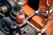 Nytillverkade tryckluftsrör. Foto: PeterFör att tillverka de nya tryckluftsrören anlitades Tenö Varv i Vaxholm. Rören fick samma utseende som de gamla och kunde installerades direkt på motorn. För att få täta anslutningar användes den gamla tekniken att linda gängorna med lin.